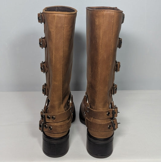 NEW Steve Madden Womens Leather Brocks Fashion Boot Brown Sz 7.5