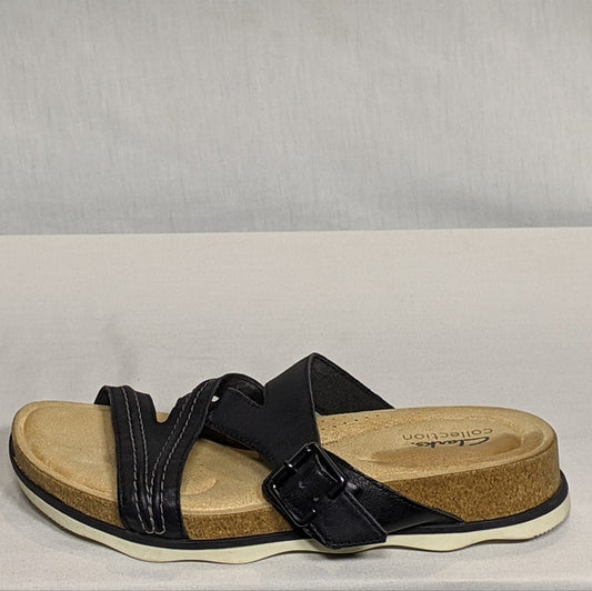 Clarks Womens Brynn Comfort Walking Sandal Flat Sz 8 black COMFORT
