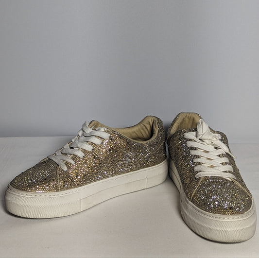 NEW Blue by Betsey Johnson Womens Rhinestone Sidny Sneaker Sz 9 Gold