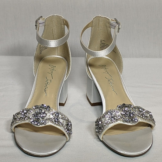NEW Betsey Johnson Women's Sb-mel Heeled Sandals Rhinestone Sz 6 white